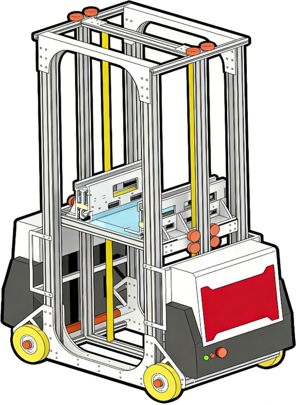 전후좌우 4방향 자유 이동이 가능한 스마트 셔틀카로, 고밀도 창고 환경에서 팔레트 및 트레이를 자동으로 입출고합니다. 다층 레일 시스템과 결합하여 수직·수평 방향 자유 이동이 가능하며, 창고 공간 활용률을 최대 40%까지 향상시킵니다.
